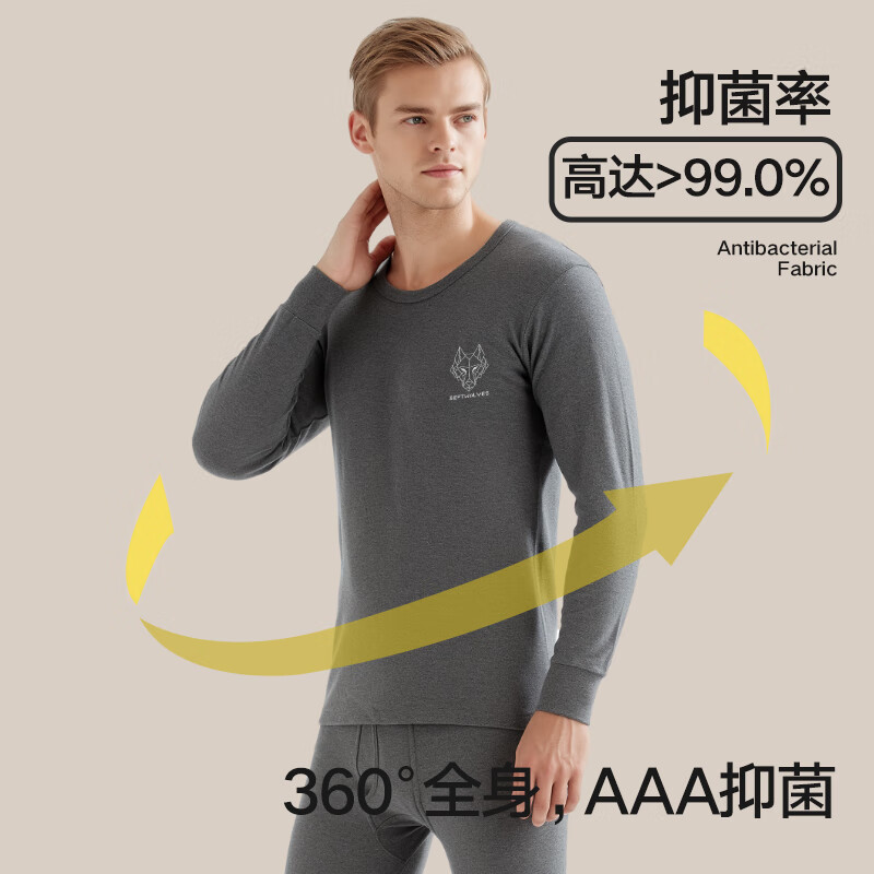 七匹狼【纯棉抑菌】保暖内衣男士秋衣秋裤套装圆领秋冬棉毛衫内衣套装
